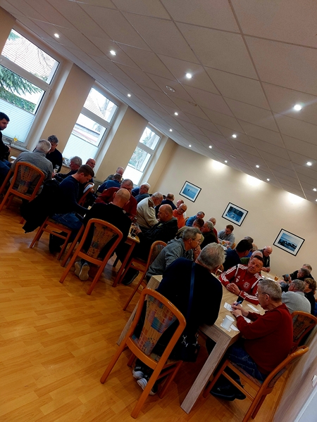 1902 e.V. ! Am 28. März 2026 lud der TSV Goldberg 1902 e.V. zur 13. Auflage des Preisskat um den Wanderpokal alle interessierte Skatfreunde aus Goldberg und dem Umland ein. Dieses Turnier findet seit 2008 statt und wird vom Sportfreund Karsten Gutsche jedes Jahr mitorganisiert. Auch in diesem Jahr wurden wieder die besten Bedingungen geschaffen, um einen schönen Nachmittag und Abend zu verbringen. Dass das Skatturnier so beliebt ist, zeigt das diese Veranstaltung bis auf den letzten Platz ausgebucht war. Binne kürzester Zeit waren alle 36 Starterplätze vergeben und die Sportfreunde des Skatblattes fanden sich um 14:00 Uhr im Veranstaltungsraum der WoGeGo ein. Bevor die Tische und Platzordnung ausgelost wurden, begrüßt der Vereinsvorsitzende Fred Kunze sowie Sportfreund Karsten Gutsche alle Teilnehmer und erklärte kurz die Abläufe. Auch in diesem Jahr haben sich viele langjährige Skatfreunde eingefunden, darunter wieder viele ehemalige Pokalsieger, um im fairen Wettstreit den diesjährigen Skatkönig oder Skatkönigin zu ermitteln. |