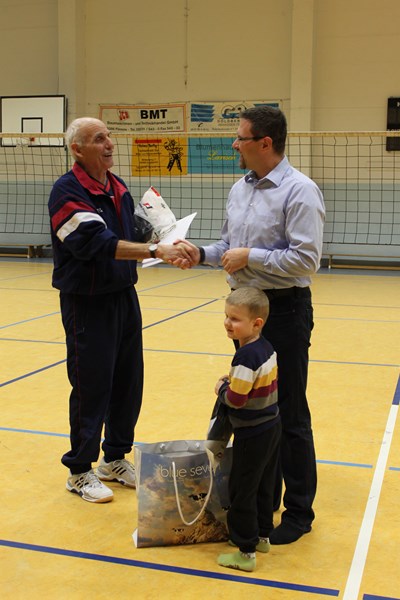 Die Abteilung Volleyball des TSV Goldberg führte zwischen den Feiertagen und Silvester wieder ein Turnier für Kinder und Eltern gemeinsam durch. In der Zeit von 16.00 Uhr bis 18.00 Uhr traten 32 Aktive an die Netze. Die Turnierleitung mit Ute Brinckmann, Maik Tunat, Nils Wotenick und Thea und Uli Kubowicz hatten alles für die zwei zu spielenden Turniere vorbereitet. Bei den Kindern der 1.- 3. Klasse spielten auch 3 Muttis mit. Hier gewann das Team von Samantha vor den Sportlern um Jan und der Truppe von Celina. Für die Schüler der 4.- 6. Klasse ging es auf dem großen Feld jeweils unterstütz durch 3 Elternteile um Punkte und Sieg, wobei ein Spiel 15 Minuten dauerte. Nach 6 Spielen ergab sich folgende Endauswertung: auf Platz 1 Celina und Team, auf Platz 2 Sina und mit Mannschaft, Platz 3 Team Lara vor dem Team von Reneé. Im Anschluss spielten gemeinsam zur Freude 2 Elternmannschaften gegen zwei Schülermannschaften. Obwohl an erster Stelle der Spaß stand, wurde trotzdem um jeden Punkt gekämpft. Nach erfolgreichem Ende freuten sich nun alle auf die aktive Erholung. Kurz nach der Siegerehrung stand noch eine Überraschung an. Dirk Fleischer von der Concordia-Versicherungsgruppe hatte davon gehört, dass bei den älteren Spielern inzwischen häufig über blaue Flecken und aufgeschrammte Knie „geklagt“ wurde, da mit vollem Einsatz gespielt wird.